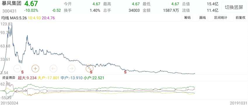 然而,截至北京時(shí)間2019年10月31日,暴風(fēng)集團(tuán)的股價(jià)已經(jīng)跌倒了4.67元/股,市值僅有15.39億元。