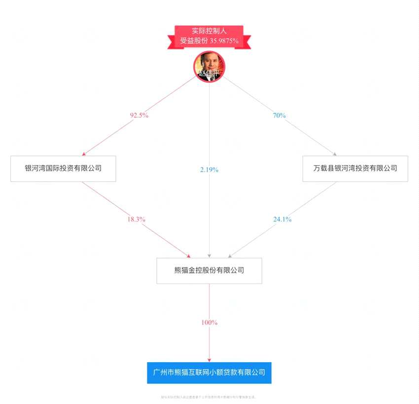 互金通訊社了解到,My錢包是普人貸旗下大額分期產(chǎn)品,運(yùn)營(yíng)主體是廣州市熊貓互聯(lián)網(wǎng)小額貸款有限公司(以下簡(jiǎn)稱熊貓小貸),據(jù)企查查顯示,熊貓小貸由【熊貓金控(600599)、股吧】股份有限公司100%控股,其實(shí)際控制人是趙偉平。值得一提的是,趙偉平實(shí)控平臺(tái)銀湖網(wǎng)已在此前被警方立案,此外,趙偉平還是銀河灣投資有限公司的實(shí)際控制人。