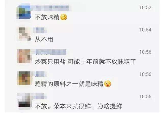 11月6日,揚子晚報記者在朋友圈發(fā)起微調查發(fā)現(xiàn),21家被調查者中,20家稱炒菜不放味精;1家說放,而且用的就是蓮花味精,但用量極少。不放味精的,替代品有雞精、蘑菇精、鹽、醬油、蠔油、蒸魚豉油、糖、咖喱、香菜……還有人表示啥都不放。還有人表示,自己不放,但長輩在做拿手菜時,為了保持水準,會“偷偷摸摸放”。