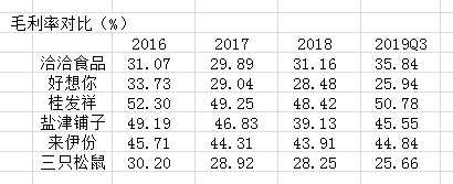 這說(shuō)明線下收入占比較高的公司,其毛利率大都較高,而線上收入占比較高的公司,毛利率則比較低。從縱向?qū)Ρ瓤?,線下收入高的公司,不僅毛利率較高,且在2018年和2019年Q3有上升的趨勢(shì),與三只松鼠境遇相似的是【好想你(002582)、股吧】,自從收購(gòu)了百草味后,毛利率不斷下滑。線上收入占比接近90%的三只松鼠,不得不承擔(dān)毛利最低的尷尬。