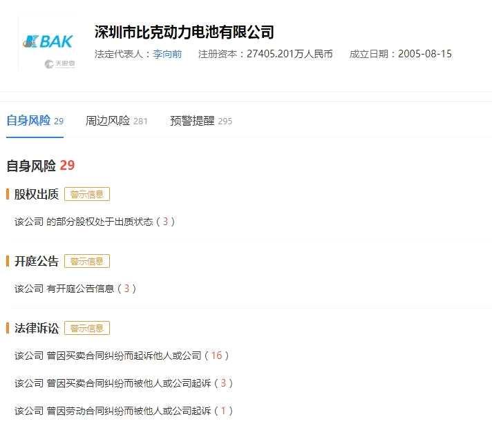 天眼查數(shù)據(jù)顯示,該公司目前自身風(fēng)險(xiǎn)29條,周邊風(fēng)險(xiǎn)則達(dá)到281條,預(yù)警提醒也有295條。