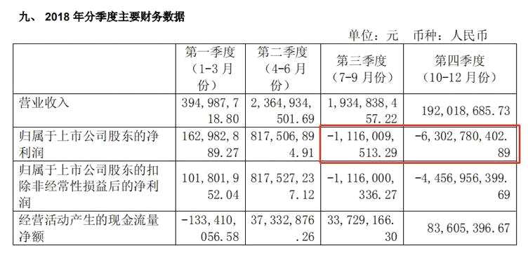 2018年年報顯示,公司營業(yè)收入48.87億元,同比上漲26.54%,歸屬上市公司股東凈利潤虧損60.38億元。從年報中可以看到,公司的貨幣資金和可供出售金融資產(chǎn)因應(yīng)收賬款投資出現(xiàn)問題大幅減少,公司的歸屬上市公司股東凈利潤第四季度大跌,而這起事件爆發(fā)在9月,這其中是否有聯(lián)系呢?