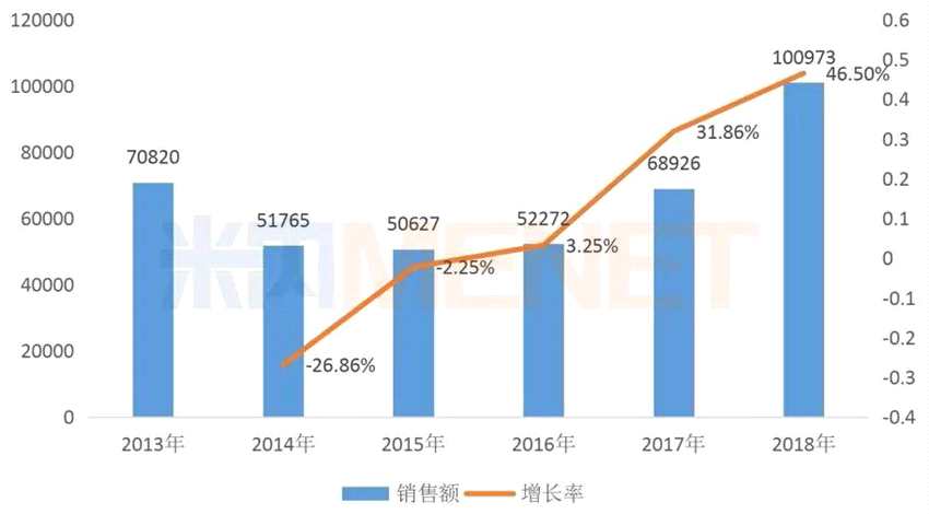 圖1:中國(guó)公立醫(yī)療機(jī)構(gòu)終端那屈肝素鈣注射液的銷售情況(單位:萬元)