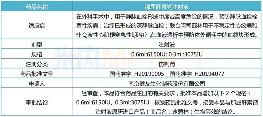 11月15日,【健友股份(603707)、股吧】(603707)發(fā)布公告稱,近日收到國(guó)家藥監(jiān)局核準(zhǔn)簽發(fā)的《藥品補(bǔ)充申請(qǐng)批件》,批準(zhǔn)公司生產(chǎn)的那屈肝素鈣注射液增加2個(gè)規(guī)格(0.6ml:6150IU、0.3ml:3075IU),核發(fā)藥品批準(zhǔn)文號(hào),接受該產(chǎn)品與那屈肝素鈣注射液原研進(jìn)口產(chǎn)品生物等效的結(jié)論。