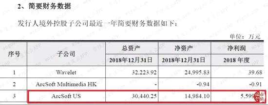 2018年,ArcSoft US的總資產(chǎn)、凈資產(chǎn)、凈利潤分別為3.04億元、1.5億元、0.56億元,分別占同期合并報表的25%、15%、35%。
