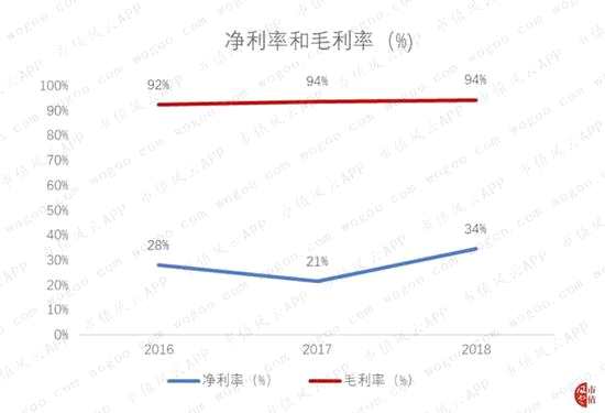 近三年的毛利率和凈利率分別保持在90%和20%以上。