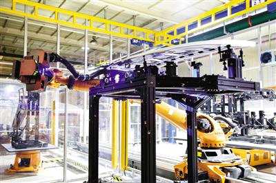 圖為【江淮汽車(chē)(600418)、股吧】生產(chǎn)線(xiàn)的藍(lán)光自動(dòng)化檢測(cè)設(shè)備。(資料照片)