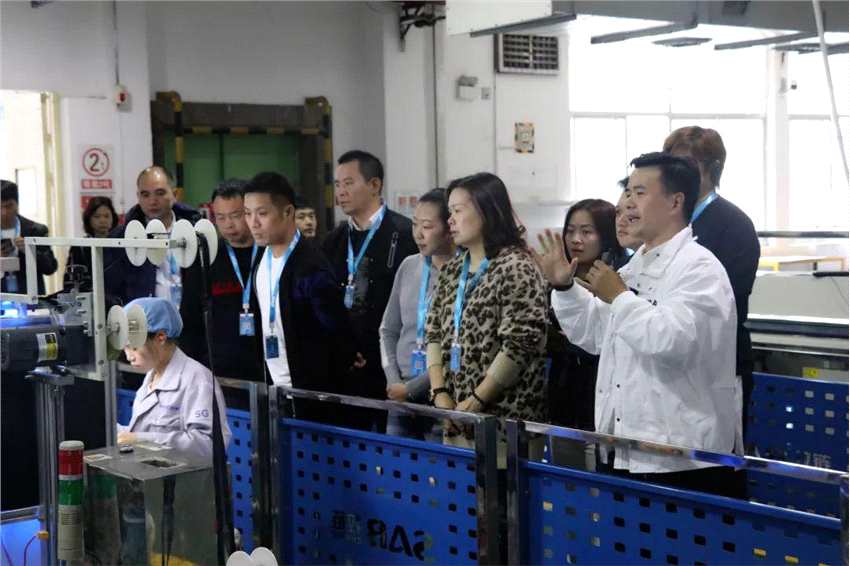 隨后,黃總帶領(lǐng)客戶參觀并解說SAB輔料智慧化生產(chǎn)流程,客戶對SAB輔料的智慧化生產(chǎn)興趣十足,在參觀過程中不斷對相關(guān)問題進行詳細探討。
