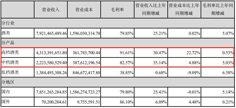 已連續(xù)五年公司業(yè)績呈現(xiàn)出25%左右復(fù)合增長態(tài)勢的瀘州老窖(000568),在今年上半年以“國窖1573”為代表的高檔酒類實(shí)現(xiàn)銷售收入43.13億元,較上年同期增長30.47%,毛利率達(dá)到91.61%。另外,公司中檔酒類上半年實(shí)現(xiàn)銷售收入22.24億元,較上年同期增長35.14%。
