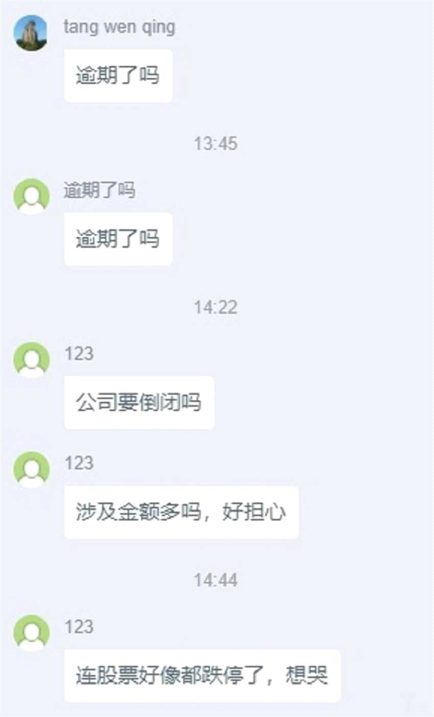事出以后,平臺(tái)出借人非常關(guān)注此事情況,在平臺(tái)互動(dòng)欄訊紛紛詢(xún)問(wèn):“逾期了嗎?”、“金額大嗎?”、“公司要倒閉嗎?好擔(dān)心呀?!?/p>