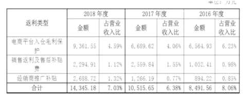 根據(jù)公司政策,在電商平臺入倉模式下,當(dāng)電商平臺銷售公司產(chǎn)品未達到毛利預(yù)期時,對于差額部分予以折扣的形式給與補足。