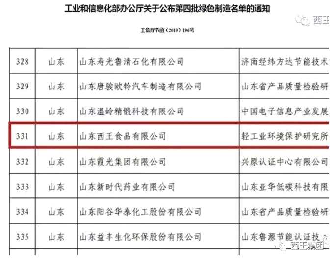 2019年9月,憑借優(yōu)秀的環(huán)境績效,西王食品公司成功入選國家工業(yè)和信息部公布的第四批綠色制造名單,順利獲批國家綠色工廠。這是對企業(yè)深入貫徹綠色發(fā)展理念,踐行“用地集約化、原料無害化、生產(chǎn)潔凈化、廢物資源化和能源低碳化”的高度肯定。