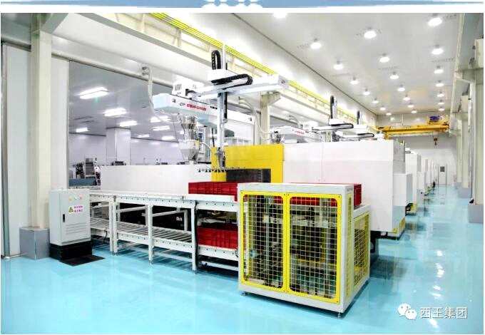在一塵不染的注塑車間,整個車間看不到一名工人,排列有序的設(shè)備、機器人,全部按照計算機指令有條不紊地忙碌著。西王系列食用油包裝所用的瓶體、瓶蓋、把手,都在這里生產(chǎn)。