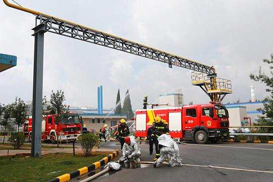 云南浩鑫鋁箔有限公司舉行消防演練。 李發(fā)興攝