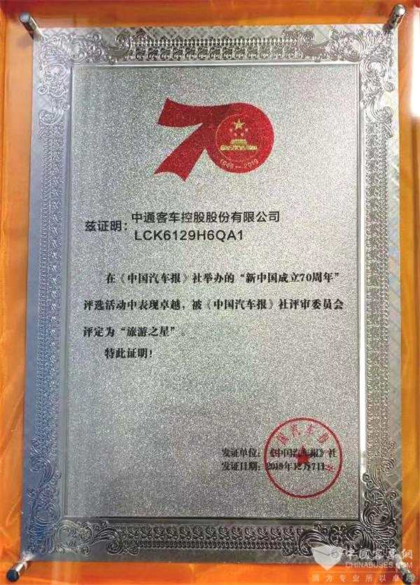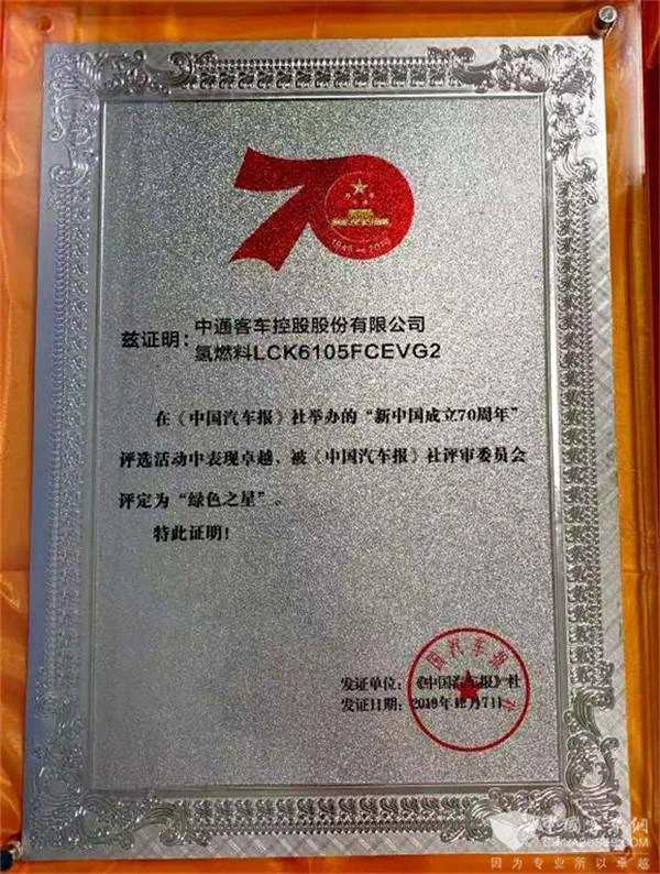 2019年12月7日,由《中國(guó)汽車(chē)報(bào)》社有限公司與中國(guó)汽車(chē)工程研究院股份有限公司聯(lián)合主辦的獻(xiàn)禮新中國(guó)成立70周年暨2020中國(guó)商用車(chē)年度車(chē)型評(píng)選頒獎(jiǎng)典禮在重慶舉行,現(xiàn)場(chǎng)揭曉了多個(gè)獎(jiǎng)項(xiàng),【中通客車(chē)(000957)、股吧】(000957)載譽(yù)而歸,兩個(gè)重點(diǎn)推廣車(chē)型10.5米氫燃料公交客車(chē)榮獲“綠色之星”大獎(jiǎng),12米新世嘉高端客運(yùn)旅游車(chē)獲得“旅游之星”大獎(jiǎng)。