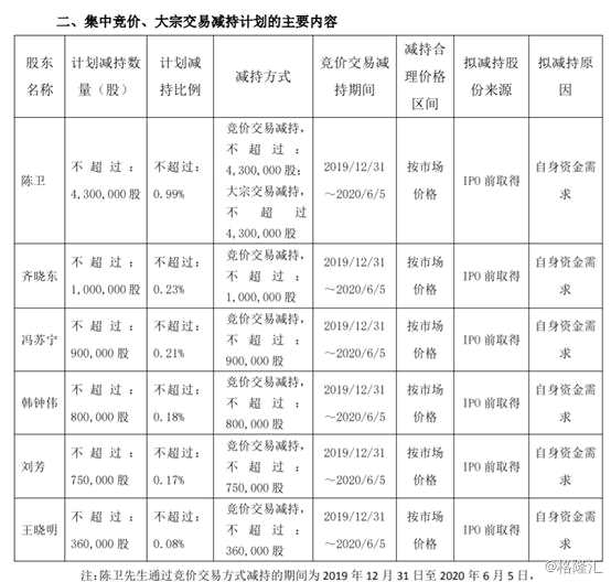 12月9日盤后,【璞泰來(603659)、股吧】(603659)(603659.SH)發(fā)布董監(jiān)高集中競價及大宗交易減持股份計劃的公告,公告顯示陳衛(wèi)計劃減持不超過430萬股,占公司總股本的0.99%;齊曉東計劃減持不超過100萬股,占公司總股本的0.23%;馮蘇寧計劃減持不超過90萬股公司股份,占公司總股本的0.21%;韓鐘偉計劃減持不超過80萬股,占公司總股本的0.18%;劉芳計劃減持不超過75萬股,占公司總股本的0.17%;王曉明計劃減持不超過36萬股,占公司總股本的0.08%。以上6名公司董監(jiān)高合計減持811萬股,占公司總股本比例的1.86%,減持原因均為自身資金需求。