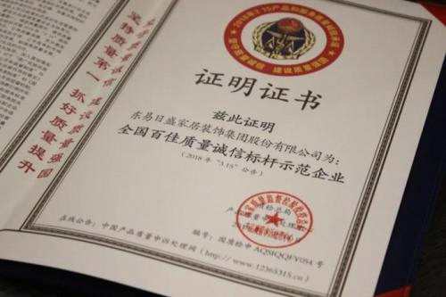 2018年全國百家質(zhì)量誠信標(biāo)桿示范企業(yè)