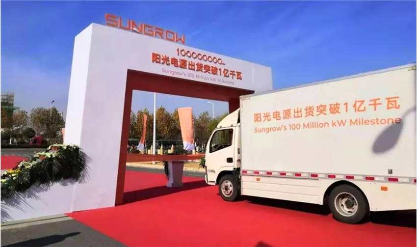 為了慶祝這一歷史性時刻,陽光電源特別在廠區(qū)門口舉行了簡單的儀式。當(dāng)貨車裝載著全球功率最大的1500V組串逆變器駛離廠區(qū),陽光電源正式成為全球首家邁過100GW門檻的逆變器企業(yè)。