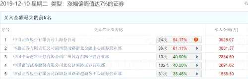 以12月10日的龍虎榜為例,買入金額前5的營業(yè)部,無一例外都是知名的游資大本營,合計買入1.4億元。以買一的中信證券(600030)上海分公司為例,12月10日當天,其還占據(jù)了四川金頂(600678)和【南京公用(000421)、股吧】(000421)龍虎榜的買一和買三席位。