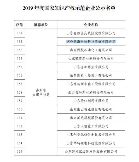 2019年11月29日,國(guó)家知識(shí)產(chǎn)權(quán)局發(fā)布《2019年度國(guó)家知識(shí)產(chǎn)權(quán)優(yōu)勢(shì)示范企業(yè)評(píng)審和復(fù)驗(yàn)結(jié)果公示》,【正海生物(300653)、股吧】(300653)名列其中。
