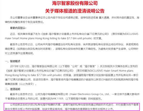海爾智家并沒(méi)有對(duì)該報(bào)道進(jìn)行全面否認(rèn),只是提醒私有化尚有重大不確定性。