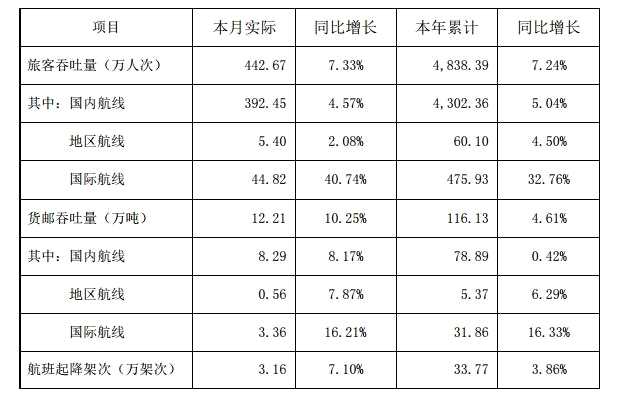 摘要: 2019年12月16日消息:12月16日晚間,深圳市機(jī)場股份有限公司發(fā)布關(guān)于生產(chǎn)經(jīng)營快報(bào)的自愿性信息披露公告表示,公司在2019年11月份旅客吞吐量達(dá)到442.67萬人次,同比增長7.33%;其中,國