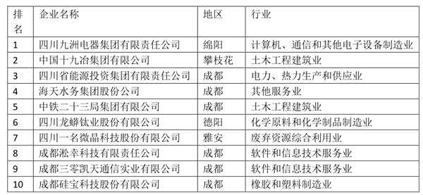 四川企業(yè)技術創(chuàng)新發(fā)展能力100強發(fā)布?。ǜ桨駟危?/h1>