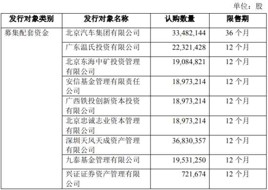 本次解除限售上市流通股為公司向北京汽車集團(tuán)有限公司非公開發(fā)行募集資金的33,482,144股股份,限售期為36個(gè)月,上市流通日期為2019年12月30日。