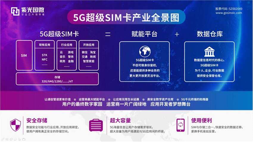 圍繞這些痛點,基于紫光國微自身安全芯片技術(shù)積累,整合存儲資源優(yōu)勢,5G超級SIM卡應運而生。