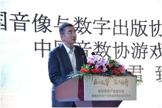 圖為中國(guó)中國(guó)音像與數(shù)字出版協(xié)會(huì)第一副理事長(zhǎng)兼中國(guó)音數(shù)協(xié)游戲工委主任張毅君致辭。 (環(huán)球網(wǎng) 記者 鄧云/攝)