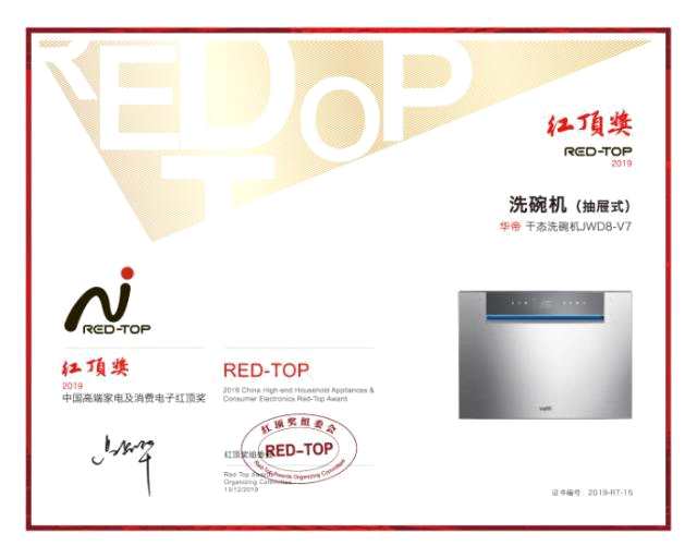 (華帝干態(tài)洗碗機JWD8-V7榮獲紅頂大獎)