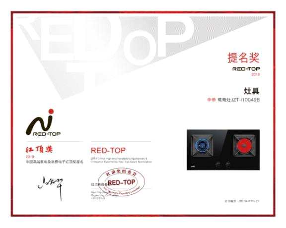 (華帝鴛鴦灶JZY-i10049B、華帝吸油煙機CXW-260-J659AH榮獲紅頂獎提名獎)