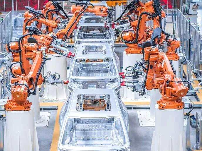 在汽車產(chǎn)業(yè)發(fā)生深刻變革的當(dāng)下, 發(fā)展智能制造,構(gòu)建數(shù)字工業(yè)勢在必行,作為一家向智能制造邁出堅實(shí)步伐的綜合型車企,江淮汽車大力推廣機(jī)器人、高 端數(shù)控裝備等加工裝備和AGV等智能物流裝備的應(yīng)用,全面提高關(guān)鍵工序的自動化水平,顯著提升勞動生產(chǎn)率。 其與蔚來汽車聯(lián)合打造的世界級智造工廠,采用“互聯(lián)網(wǎng)+智造”模式,擁有國內(nèi)自主品牌首條高端全鋁車身生產(chǎn)線,配備大量智能化設(shè)備,焊裝整體自動化率更是高達(dá) 97.5%,達(dá)到世界一流水平。