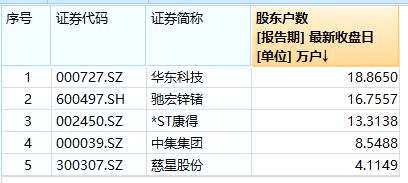 最新數(shù)據(jù)顯示,中集集團(tuán)股東戶數(shù)為8.55萬(wàn)戶,華東科技股東戶數(shù)18.86萬(wàn)戶,慈星股份股東戶數(shù)4.11萬(wàn)戶,*ST康得股東戶數(shù)13.31萬(wàn)戶,馳宏鋅鍺股東戶數(shù)16.76萬(wàn)戶。5家公司股東戶數(shù)合計(jì)為61.6萬(wàn)戶。