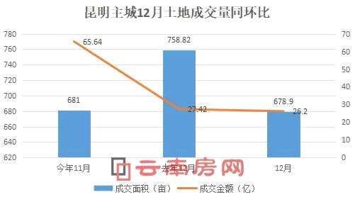 對比歷史數(shù)據(jù)來看,昆明主城本月的土地成交量同環(huán)比雙降。今年11月昆明主城賣地681畝收入65.64億,成交土地面積環(huán)比下降0.31%,成交金額環(huán)比下跌60%。相比去年12月昆明主城賣地759畝收入27.4億,成交面積同比降10.53%,成交額同比降4.45%。