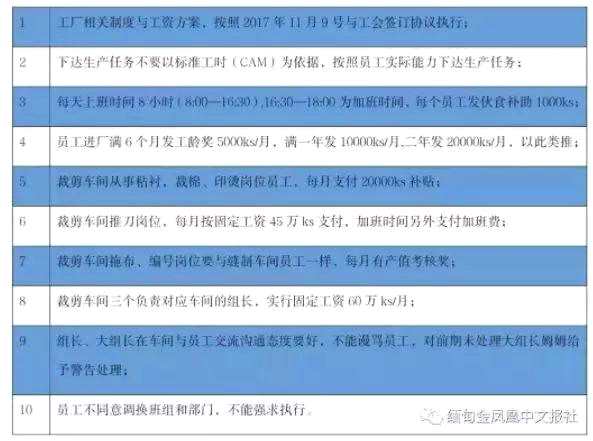 據(jù)了解,罷工工人主要的訴求集中在薪酬方面,12.04工會(huì)與資方談判提出10條要求。
