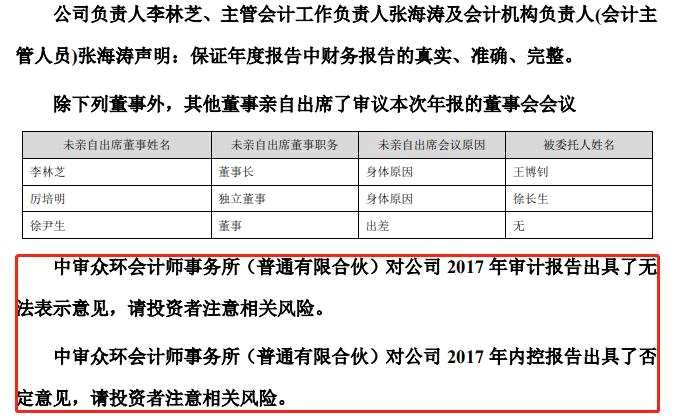 *ST凱迪的“爆雷”從2017年開始就已出現(xiàn)端倪。注意到,*ST凱迪2017年度經審計的歸母凈利潤為-23.81億元,同比下跌-813.74%,且公司2017年度財務報告被出具無法表示意見的審計報告。
