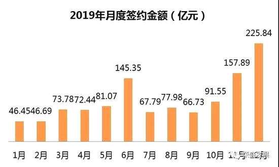 根據(jù)榮盛發(fā)展公告,2019年12月,榮盛發(fā)展實現(xiàn)簽約面積221.94萬平方米,同比增長31.54%;簽約金額225.84億元,同比增長17.51%,簽約面積及簽約金額均創(chuàng)2019年全年單月最高。