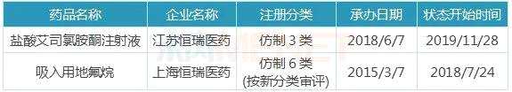 表2:已有企業(yè)過評的麻醉劑