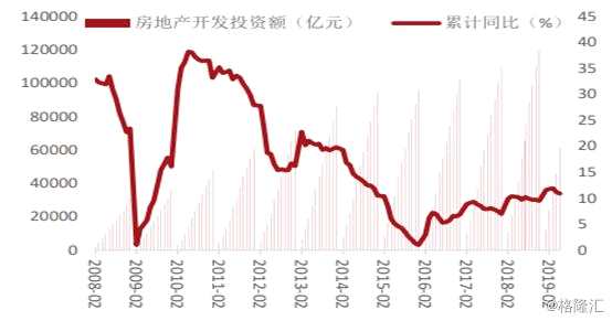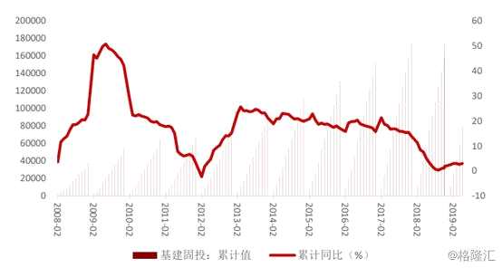 基建方面,投資增速自2018年四季度開始呈現(xiàn)出上升態(tài)勢,2019年上半年同比增速2.95%,前11月同比增速4%。并且為了提振經(jīng)濟,基建逆周期調(diào)控成為政府著力的重點。