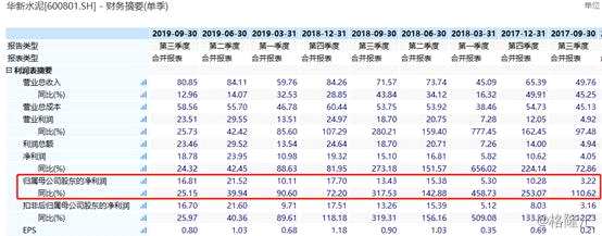 據(jù)披露,華新水泥預計2019年歸母凈利潤為60.9--66.1億元,同比增長18%--28%,扣非后歸母利潤58.85-64.03億元,同比增加15-25%。乍眼一看,業(yè)績維持兩位數(shù)高增長,不算差,但細分到四季度,業(yè)績算是一顆 “小雷”。