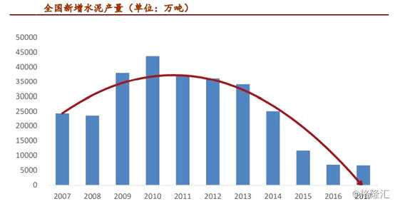 在控產(chǎn)能、重環(huán)保等系列政策的引導下,水泥行業(yè)新增產(chǎn)能自2011年起逐年連續(xù)下降,2011-2017年間年均降幅達22%,至2017年新增產(chǎn)能僅0.67億噸。