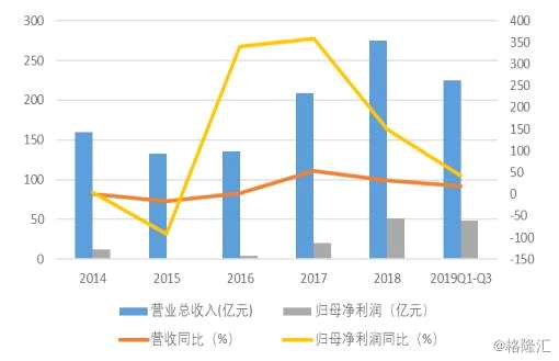 2019年Q1、Q2、Q3歸母凈利潤分別為10.11億元、21.52億元、16.81億元,分別同比增長90.6%、39.94%、25.15%。用預計全年歸母凈利潤扣減前三季度,可計算出四季度為12.7―17.9億元,同比增長-28%-1%。