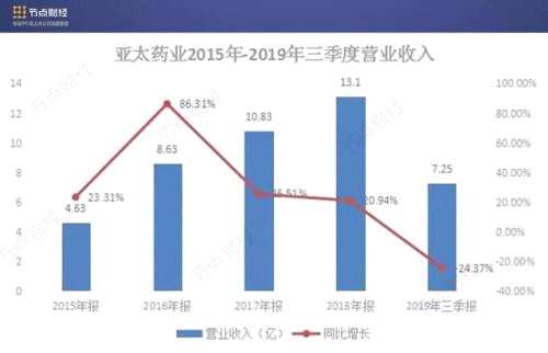 2019年10月30日,亞太藥業(yè)發(fā)布2019年第三季度財報。據(jù)三季報顯示,亞太藥業(yè)前三季度實現(xiàn)營業(yè)收入7.25億元,同比下降24.37%;實現(xiàn)歸母凈利潤690.86萬元,同比下降95.85%。其中,第三季度,亞太藥業(yè)營業(yè)收入為1.51億元,同比下降49.10%;歸母凈利潤虧損3333.05萬元,同比下降194.63%。