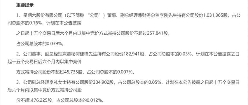 值得注意的是,2019年12月24日晚間,星期六發(fā)布控股股東及一致行動人減持股份的預披露公告和公司董事、高級管理人員擬減持股份的預披露公告,其中控股股東及一致行動人擬減持數(shù)量為不超過公司總股本比例的5.00%。