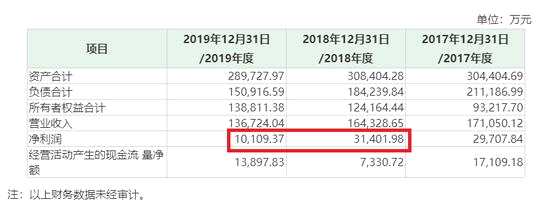 收購預(yù)案顯示,萬豐科技2017-2019年的營業(yè)收入分別為17.1億元、16.43億元和13.67億元,2018年和2019年同比分別下降3.92%、16.8%;分別實(shí)現(xiàn)凈利潤2.97億元、3.14億元和1.01億元,2019年下降67.81%,接近7成。
