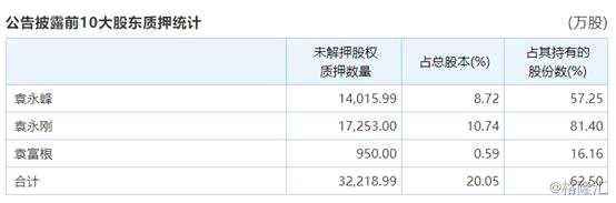 值得注意的是,除了上述問(wèn)題外,該公司實(shí)際控制人袁永峰、袁永剛、袁富根的持股質(zhì)押比例偏高,合計(jì)達(dá)到了62.5%。