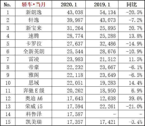 1月份轎車銷量排行榜 來(lái)源:乘聯(lián)會(huì)