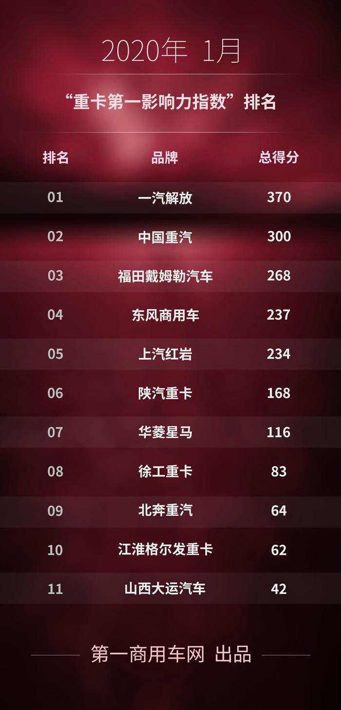 解放、重汽爭第一!前五重新排位 2020重卡品牌影響力新年新氣象