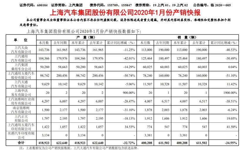 上汽集團(tuán)1月銷量下滑三成 自主乘用車板塊逆勢上揚(yáng)